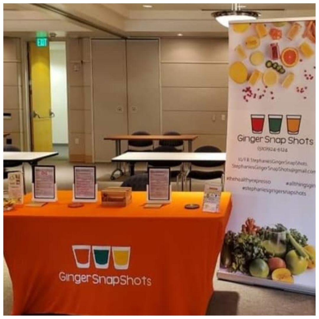 Palo Alto Medical Foundation Spring Faire Event highlighting the health benefits of ginger shots and fresh pressed juices.