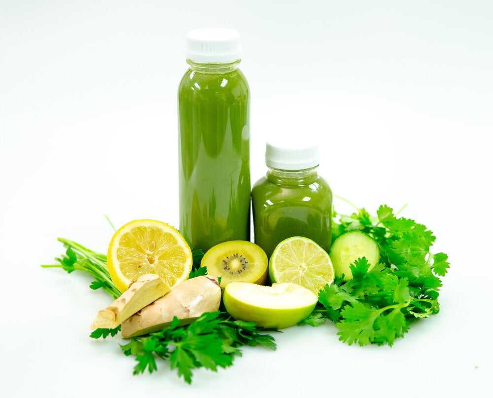 This juice blend is made with fruits (green apple, lemon, key limes and a slice of pineapple) and vegetables (celery, cucumber, parsley, cilantro and ginger) the juice blend filled with antioxidants, phytochemicals, minerals and vitamins -- sometimes as much as a day's worth of vegetables in one serving. It is high in vitamins and minerals and improves your skin, leaving it rejuvenated. Due to its high antioxidant levels the juice can calm inflammation in the body, reduce the likelihood of redness, puffiness and blemishes.